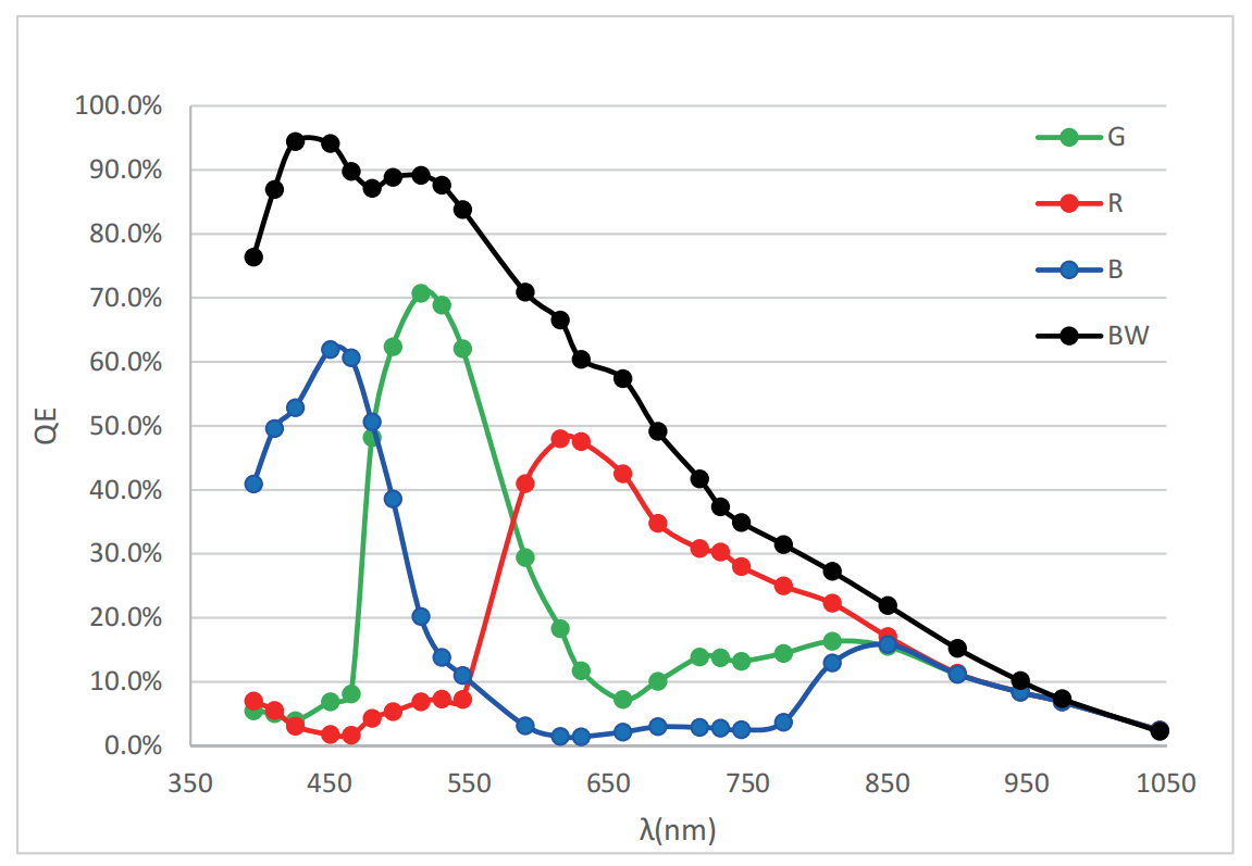 | 灵敏度 | 165 (BW) / 73 (RGB) | V/lux.s | |